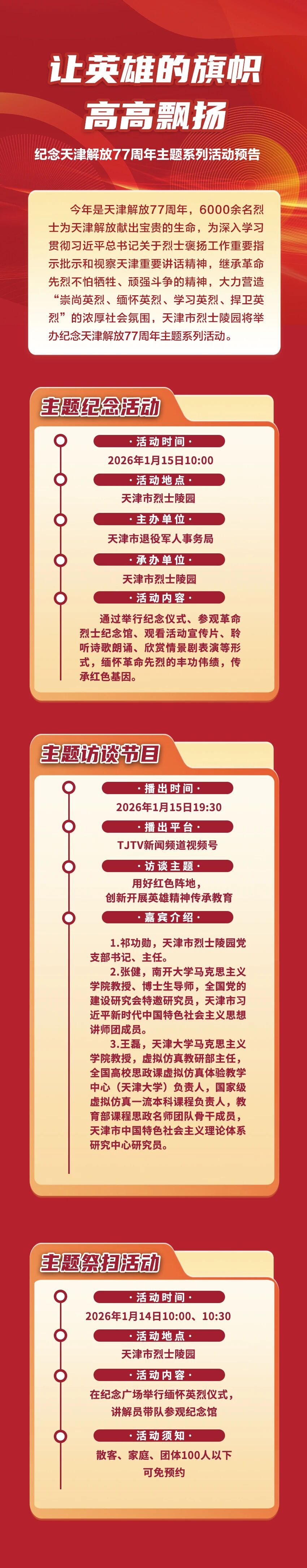 让英雄的旗帜高高飘扬——纪念天津解放77周年主题系列活动预告