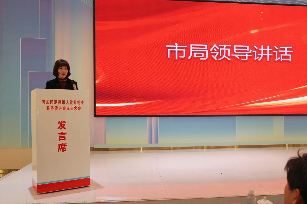 市退役军人事务局副局长党苗发表讲话,对河东区在扶持退役军人就业创业、构建全周期就业服务生态链的特色做法给予充分肯定,对促进会未来发展提出殷切期望。希望河东区围绕退役军人重点工作,持续开拓创新,探索更多具体化、制度化、项目化的工作机制和服务事项,不断深化社会供给共建成效,促进技术、资金、人才、信息等要素向退役军人工作领域集聚,形成有特色、可借鉴、可复制、可推广的成功经验做法,为全市退役军人就业创业工作再作新贡献。