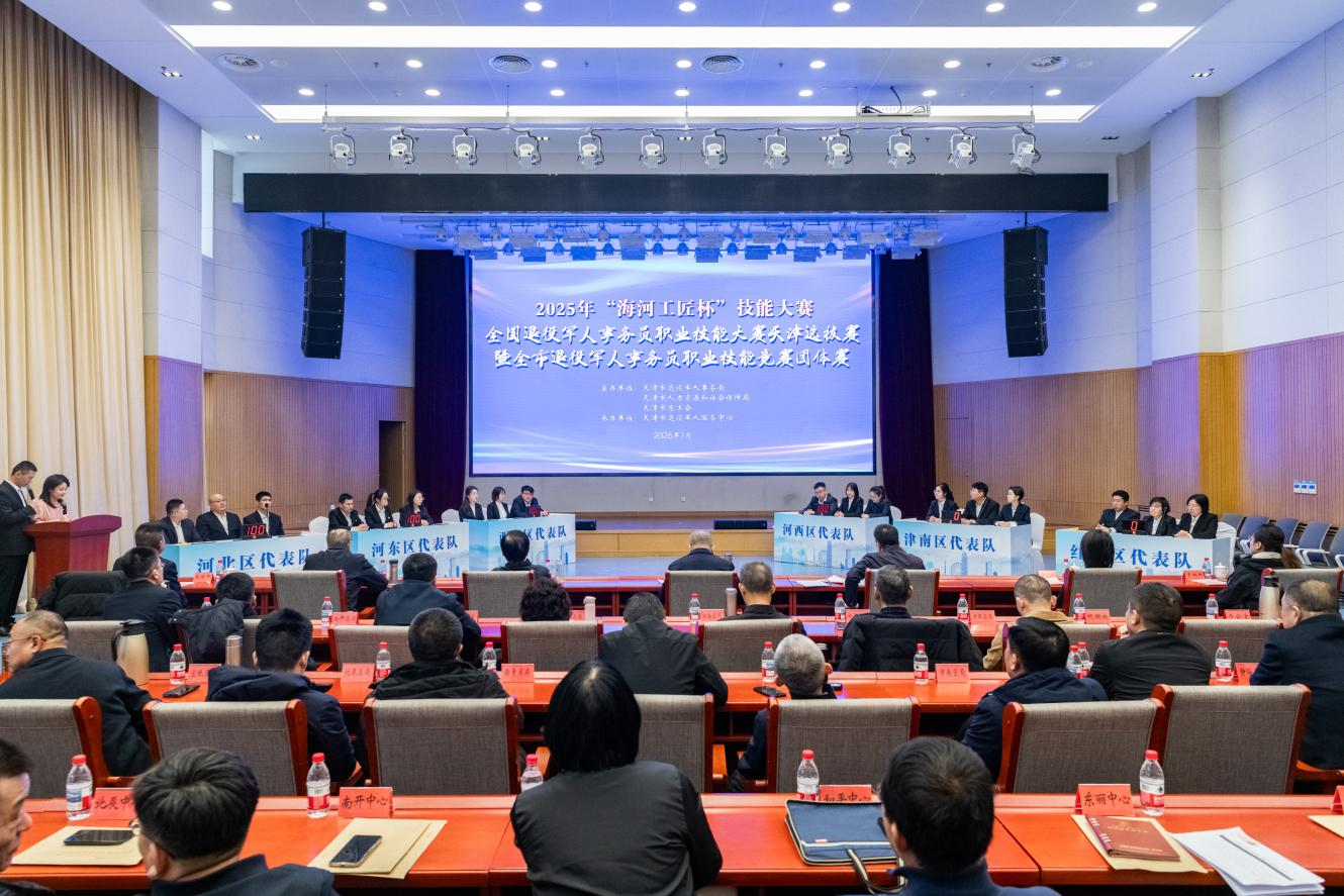 为深入学习贯彻习近平总书记关于退役军人工作重要指示批示精神,提升基层退役军人服务中心(站)工作人员政策理论水平和群众工作能力,切实把退役军人接收安置好、服务保障好、教育管理好、作用发挥好、权益维护好,以更加奋发昂扬的斗志推动退役军人服务保障工作高质量发展,2026年1月29日,我市举办2025年“海河工匠杯”技能大赛—全国退役军人事务员职业技能大赛天津选拔赛暨全市退役军人事务员职业技能竞赛团体赛活动。市退役军人事务局党组书记、局长孙宏波,局党组成员、副局长魏海波,市关爱退役军人协会副会长于秋军、林立军,市人力资源和社会保障局职业能力建设处相关负责同志,局相关处室、市退役军人服务中心负责同志及各区退役军人事务局、退役军人服务中心主要负责同志现场观摩。国家退役军人服务中心服务中心(站)联络协调处相关负责同志莅临指导。