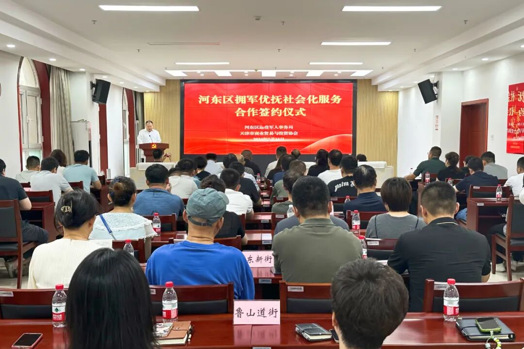 为深入贯彻落实习近平总书记关于双拥工作重要论述精神和视察天津重要讲话精神,拓展社会化拥军新模式、扩容拥军优待“朋友圈”,为河东区广大军人军属、退役军人及其他优抚对象提供更全面、优质的社会化拥军服务,近日,河东区退役军人事务局与天津市商业贸易与投资协会举办河东区社会化拥军优抚服务合作签约仪式,以实际行动提升服务质量,凝聚社会力量助推新时代社会化拥军工作展现新作为。