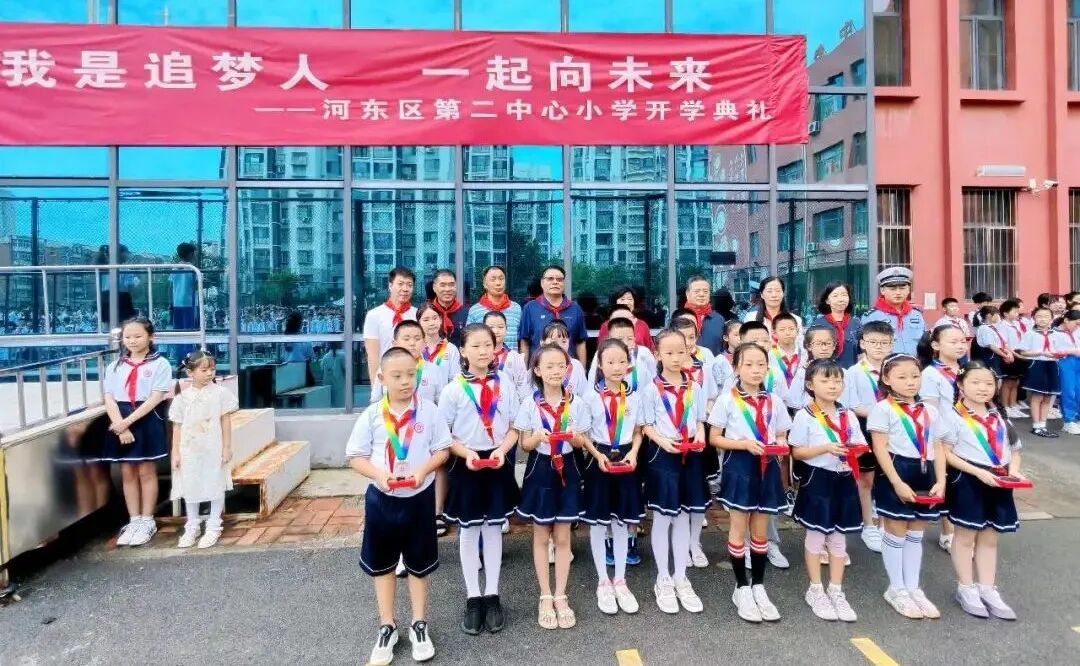 为深入开展“全民国防教育月”活动,加强新时代爱国主义教育,传承和弘扬爱国主义精神。9月1日上午,河东区第二中心小学举行 “我是追梦人 一起向未来”秋季开学典礼暨思政第一课活动。河东区军休一所关工委副主任臧远征、秘书长张淑珍、副秘书长魏余生、河东区退役军人老兵宣讲团成员赵宇箭应邀出席活动,河东区第二中心小学党支部书记、校长王惠,党支部副书记陈涛、副校长张伟及全校师生参加。